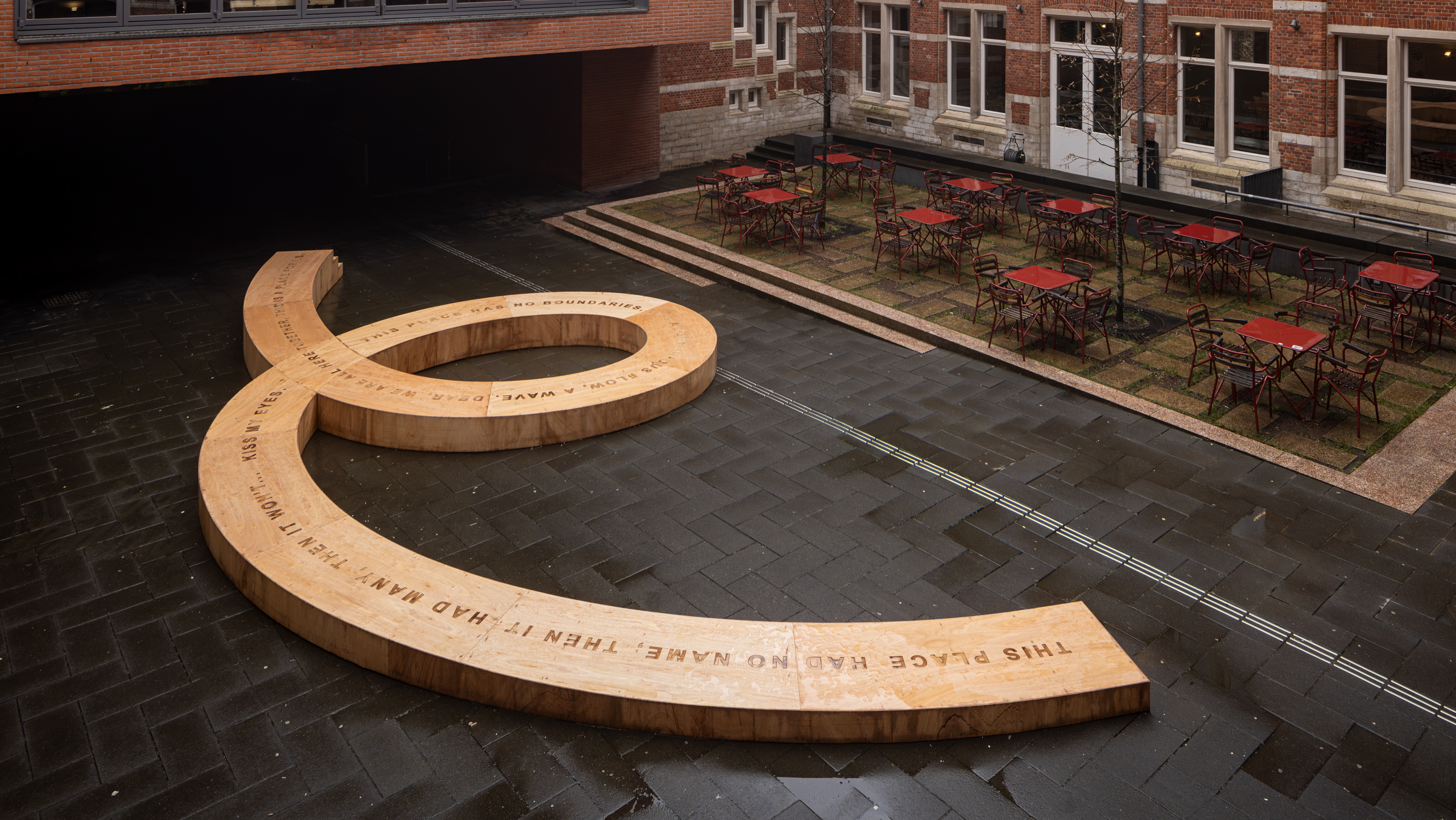 Iván Argote returns often to questions about public space in his artistic practice: he makes visible how squares and monuments from Bogota to Paris to Douala reflect a past status quo that has been naturalised, and asks how to create spaces that offer other narratives. In the film La plaza del Chafleo (2018-19), he invents the verb ‘to chaffle’ for activities people enjoy while in the public square—kissing, chanting political slogans, creating ephemeral artworks—and tells us of ‘The Poetry Fountain’ in Buenos Aires, where from the mid-1990s people gathered to read poetry, until one day, in 2008, the city drained the water from the basin. Ten years later, Argote gathered ten thousand litters of water and a group of people with garden hoses to bring the fountain back to life, after which the municipality finally decided to reopen the water mains; up until today the Poetry Fountain is again filled with water. The artist asks, ‘What if to chaffle were to fill an idea or place with meaning?’. (1)